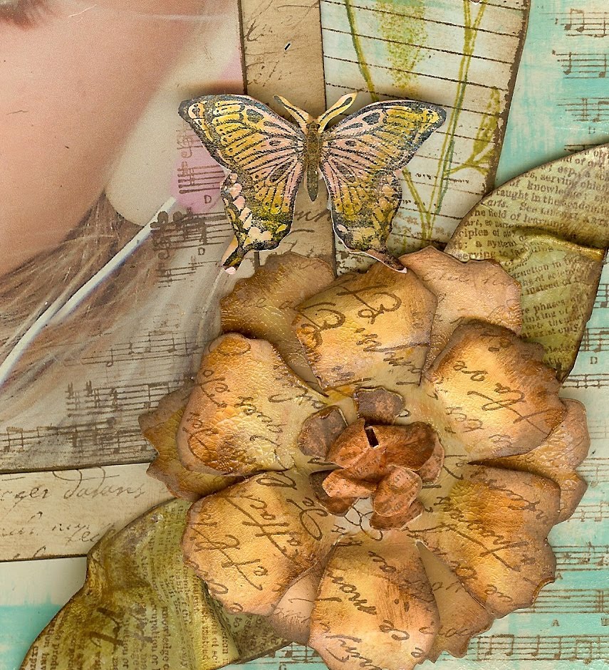 ReplyDeleteSo beautiful Gine, the layers of colors and stamps, just shows what an advanced scrapbooker you are. You can make magic out of anything! Love especially the colors in the flower and leaves
